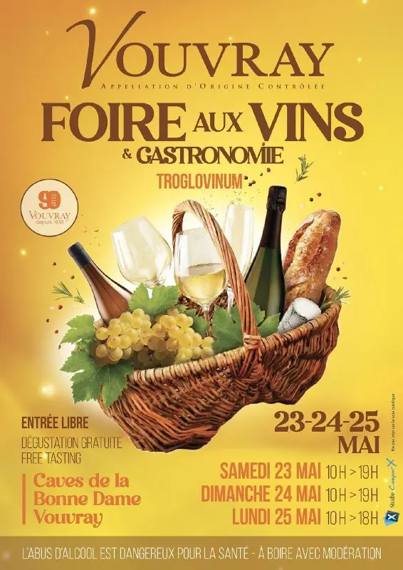 Les vignerons de l'Appellation Vouvray vous invitent à venir déguster leurs vins, ainsi que différentes spécialités gastronomiques. Rendez-vous dans les caves troglodytiques de la Bonne Dame pour rencontrer les producteurs et découvrir les 4 facettes des vins de Vouvray : sec, demi-sec, moelleux et fines bulles ! Un évènement convivial et une occasion unique de savourer les produits du terroir. À consommer avec modération, l'abus d'alcool est dangereux pour la santé.
