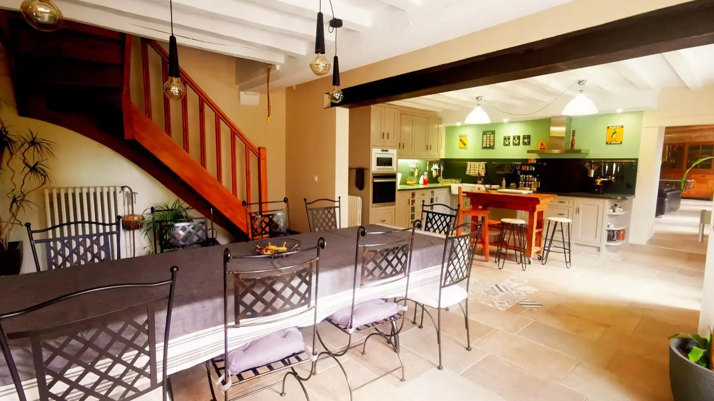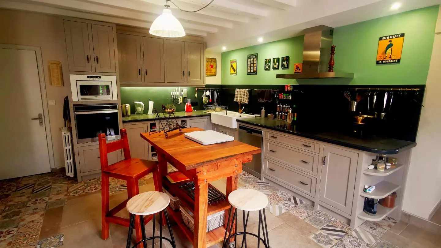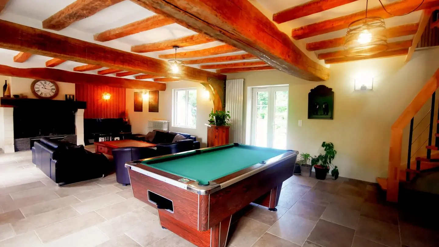 Ideally located between the historic towns of Tours and Saumur, and just a short distance from the renowned Loire à Vélo cycling route. Take advantage of this exceptional location to discover the Loire castles, famous vineyards and charming villages of Touraine. Château de Rigny-Ussé is just 3km away, not far from Langeais, Azay-le-Rideau and Villandry. The gîte is right in the heart of the countryside, surrounded by a very large garden, offering multiple possibilities for relaxation and leisure: swimming pool, garden furniture, ping-pong table, barbecue, and a rustic area for convivial meals sheltered from the sun or rain while being close to nature. The 70m² living room features a billiard table for conviviality and entertainment. The 5 spacious, elegantly decorated bedrooms are designed