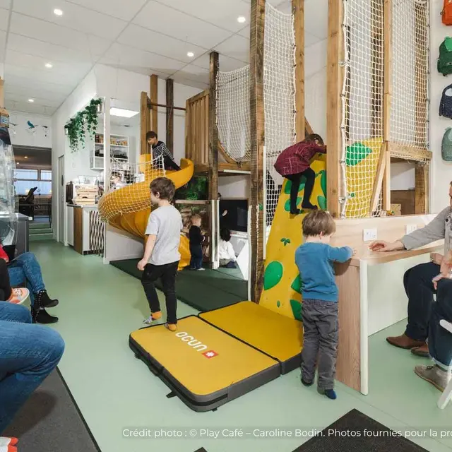 Play Café è un locale per famiglie a Tours con tre aree gioco sicure per bambini da 0 a 9 anni, una caffetteria per i genitori e un negozio di giochi ecologico. Le famiglie possono giocare, condividere una merenda fatta in casa o festeggiare un compleanno in un'atmosfera calda e accogliente. Aperto