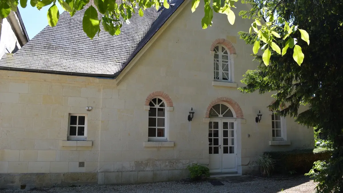 Dans le parc clos de 2,6 ha d’un élégant château Renaissance à 7 km de Chinon, avec piscine de 12,5 m, orangerie, tennis, roseraie, chapelle médiévale.