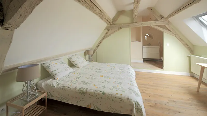Le gîte jouit d’une situation isolée, vous garantissant calme et tranquillité. De la terrasse, vous profiterez d’une vue plongeante sur l’étang. La nature est partout présente.