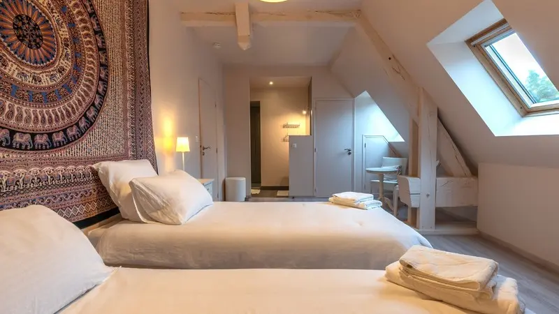 Entre Tours et Amboise, dans un ancien corps de ferme intégralement réaménagé, nous vous proposons trois gîtes. Le gîte Atoll est un appartement situé au premier étage dont le salon dans l'ancien pigeonnier carré, offre une ambiance unique et insolite pour 4 – 5 personnes. Vue sur le parc du château de la Bourdaisière. Place de parking sécurisé et local vélo à disposition. L'accès à la piscine extérieure de grande taille dans une enceinte close avec terrasse se fait de 8h à 20h. Salle de yoga.