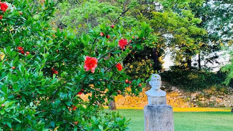 Jardin recensant plusieurs essences rares et exotiques, une roseraie et sa multitude de roses anciennes ainsi que la rose "Descartes". Implanté sur une ancienne place forte où l'on voit encore les ruines d'un château fortifié.