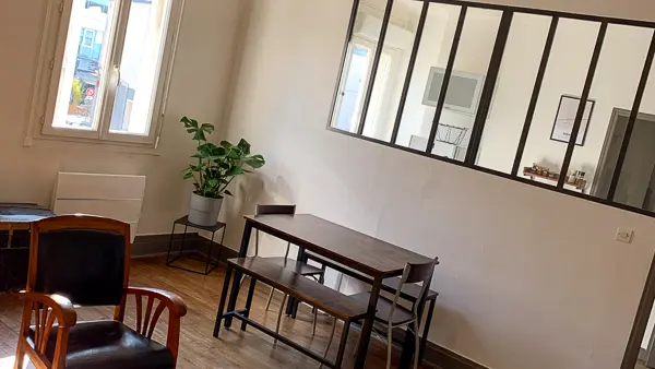 À 100 m de la gare et du tramway, dans une rue calme, cet appartement T2 de 50 m², situé au 1er étage d'un petit immeuble, offre un espace lumineux et agréable.