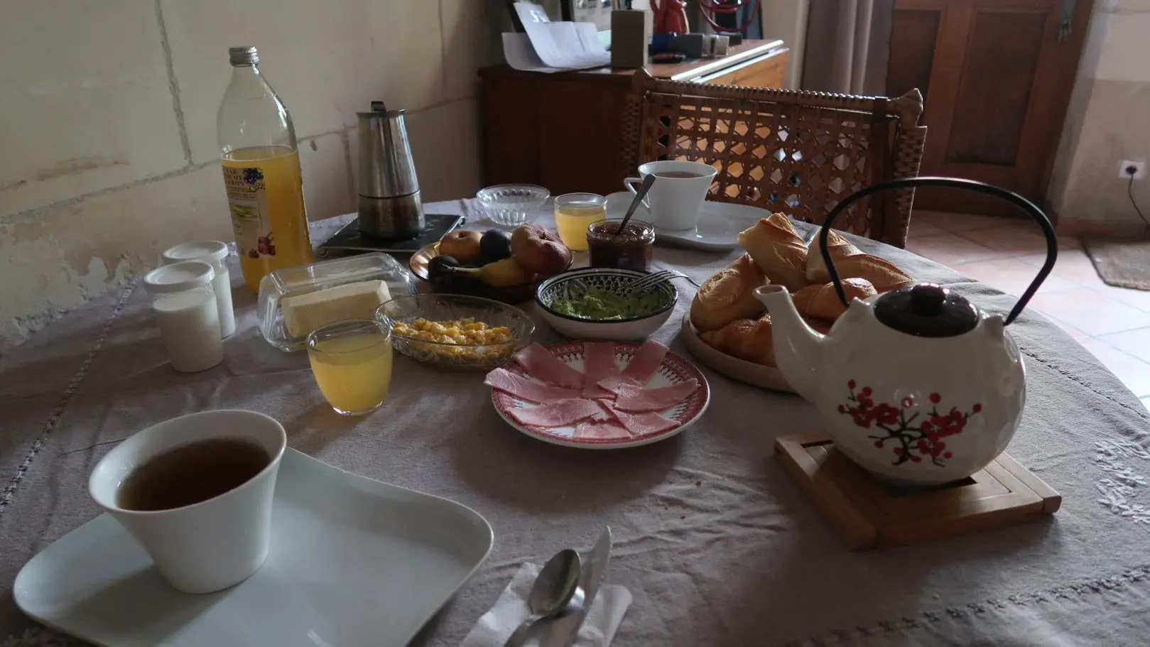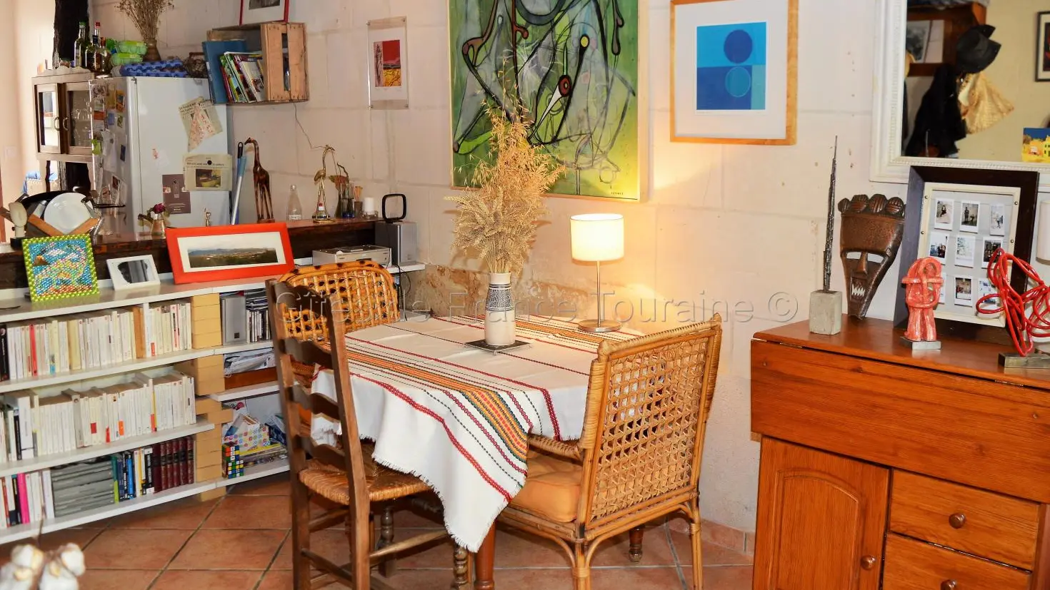 Au cœur d'un village des bords de l'Indre, Cormery, c'est une invitation au voyage qui vous attend. Les propriétaires, franco-chiliens, passionnés d'art et de littérature, sauront vous réserver un accueil des plus agréables. Pour eux, la chambre d'hôte, c'est avant tout un accueil "à la maison", en toute simplicité. Vous serez donc chez eux et ils tiennent à ce que vous vous sentiez à l'aise, dans leur maison tourangelle petite mais chaleureuse. Vous pourrez déambuler dans les ruelles du village érigé autour de l'abbaye qui fut au milieu du Moyen-Âge l'une des plus puissantes de Touraine. Les grands noms du Val de Loire seront très facilement accessibles : Chenonceau, Amboise, Loches, Azay-le-Rideau, Villandry, le Zoo de Beauval, Tours et un peu plus loin, Chambord, Blois ou Chaumont-sur-Loire. Venez également profiter de La cyclo bohème (Indre à Vélo) vous mènera vers des paysages doux et préservés. Pour le petit-déjeuner, une surprise vous attend... mais on ne vous en dit pas plus!
